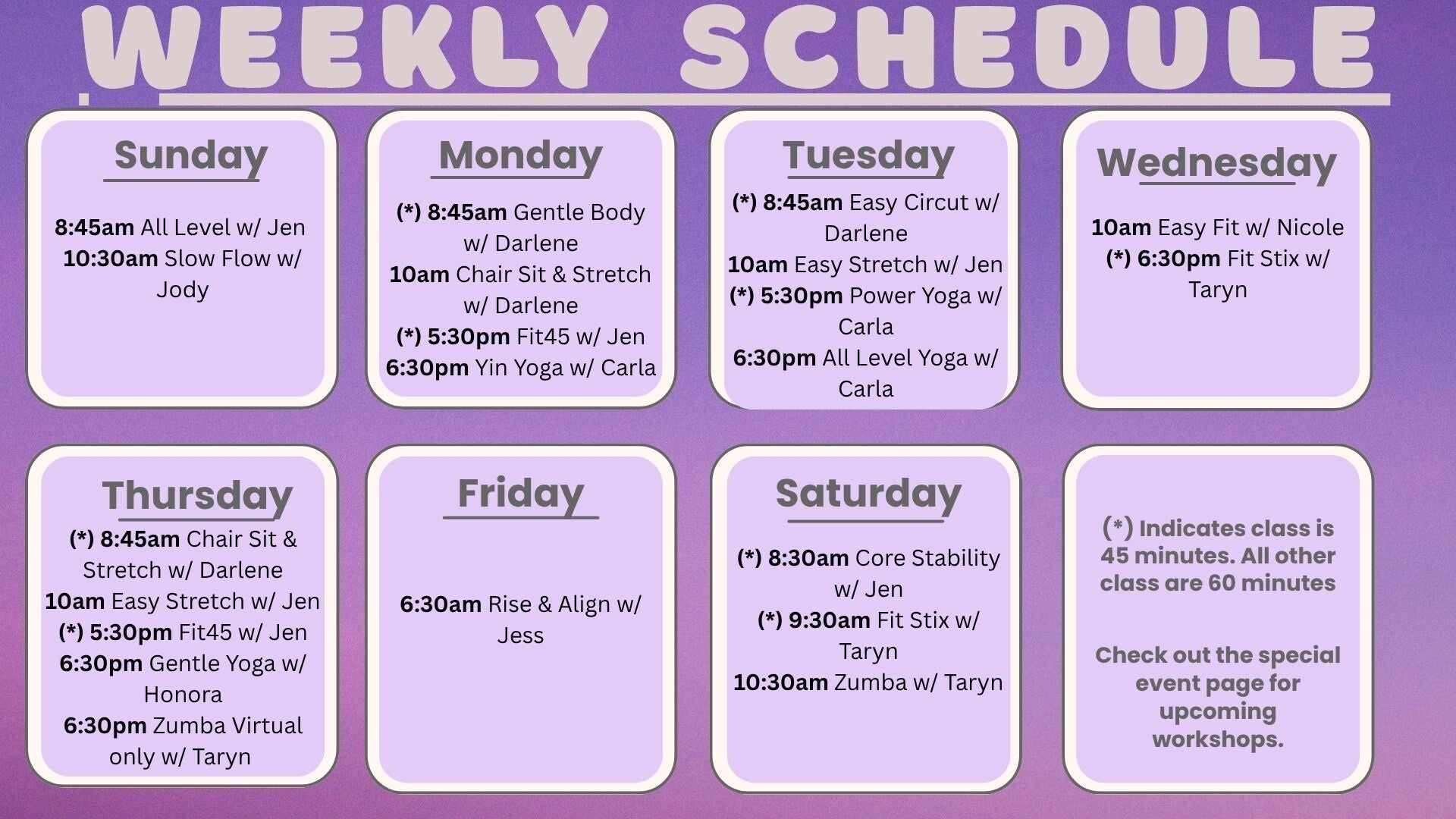 ALL CLASSES ARE IN-STUDIO OR VIRTUAL UNLESS OTHERWISE NOTED.